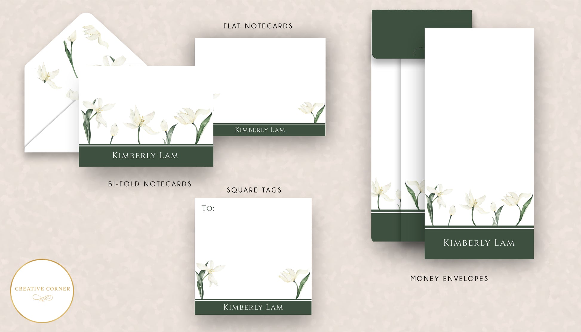 NOTE: You can place individual orders (e.g. notecards, money envelopes or gift tags only) at the drop down section below this page.
