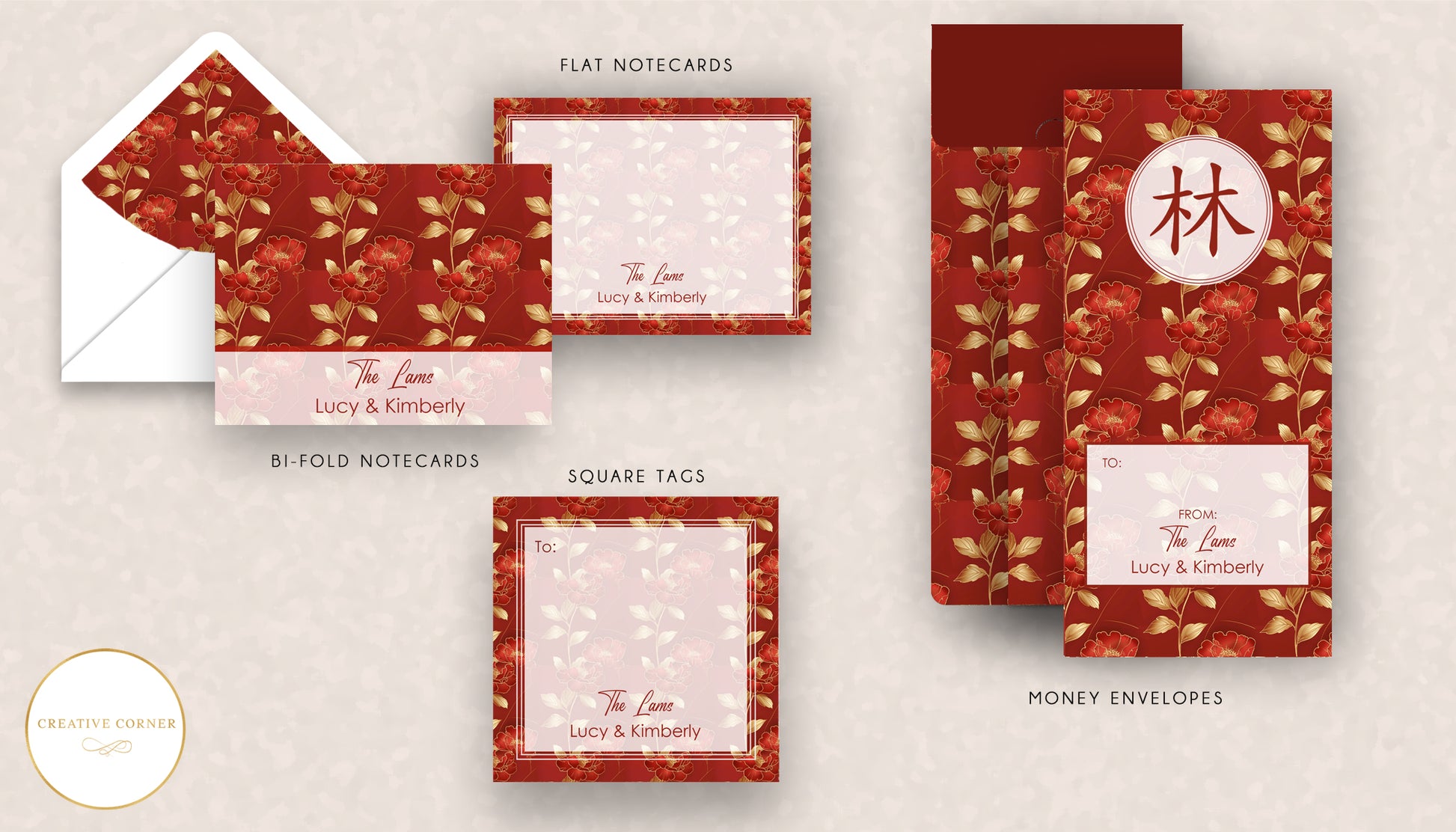 NOTE: You can place individual orders (e.g. notecards, money envelopes or gift tags only) at the drop down section below this page.
